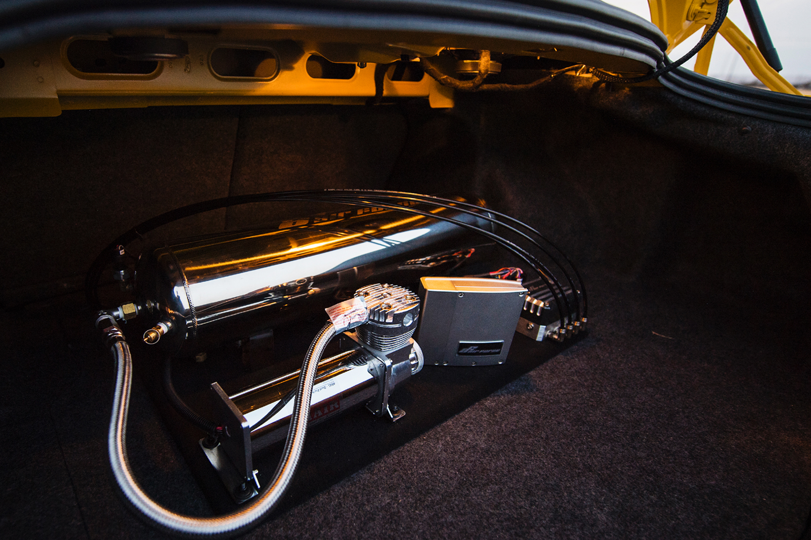 男頃をくすぐるスポーティーなラインが逆に今の若者に受け入れられているマスタング。エアサスはエアフォースのSuper Performanceキット。