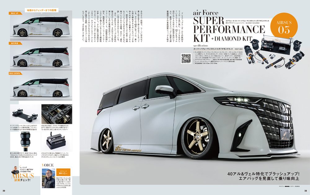 交通タイムスムック本「40アルファード&ヴェルファイア スタイルアップ&チューングガイドvol.8」企画「レーシングドライバー織戸学がプロ目線で吟味 エアサス試乗チェック」にエアフォースが掲載!